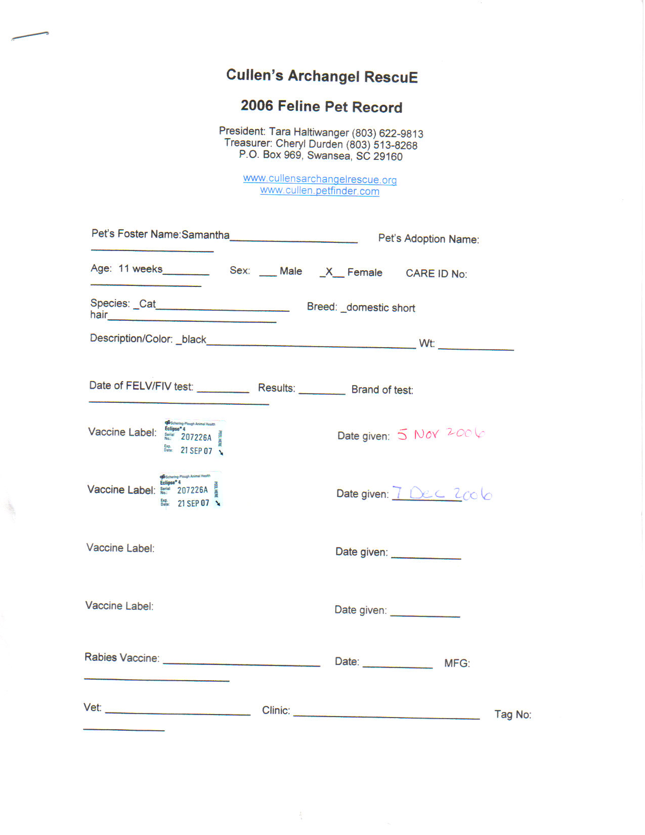 Samantha was born without the function of her left eye and partially blind in the right eye. She is scared of noises and needs work to come out of her shell. It will take someone with patience to work with her. She is house trained, dewormed, and vaccinated. Samantha comes from a family of stray kittens found in an appartment complex. She is about 4 months old. More about SamanthaGood with Dogs, Good with Cats, Is Not Good with Kids Special Needs: This baby is blind in one eye and partially blind in the other, but she still has a lot of love to give. At this time, she does not require any medications. She needs a secure environment and patience to come out of her shell. Adoption saves lives! Files Uploaded for Samantha (click to open):